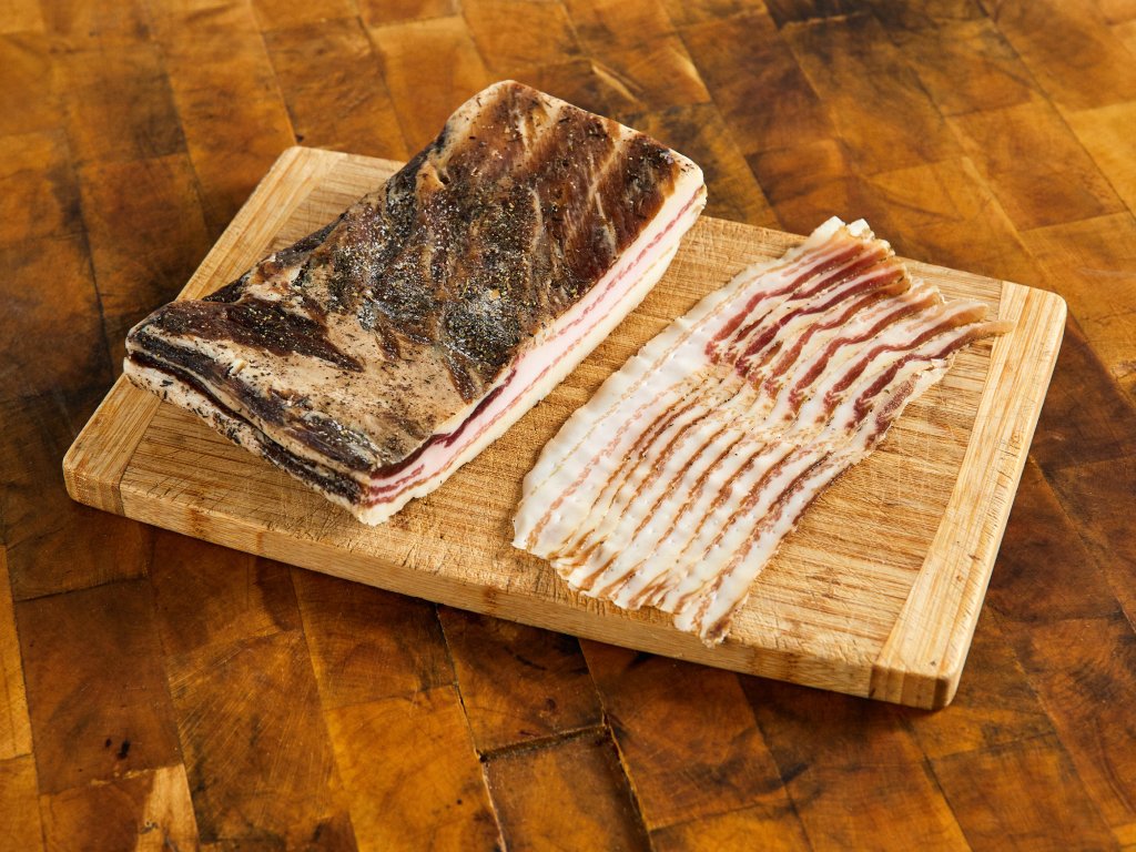 Složení: vepřový bok bez kosti, mořská sůl, třtinový cukr, černý pepř, tymián, jalovec, česnek, bobkový list, BÍLÉ VÍNO.