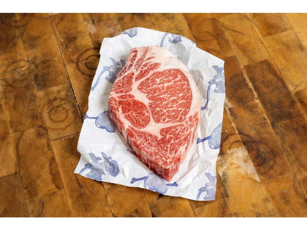 Vysoká roštěná bez kosti na steaky prémiové kvality z jalovic a volů wagyu chovaného v České republice. Vyzrálé 21 dní.